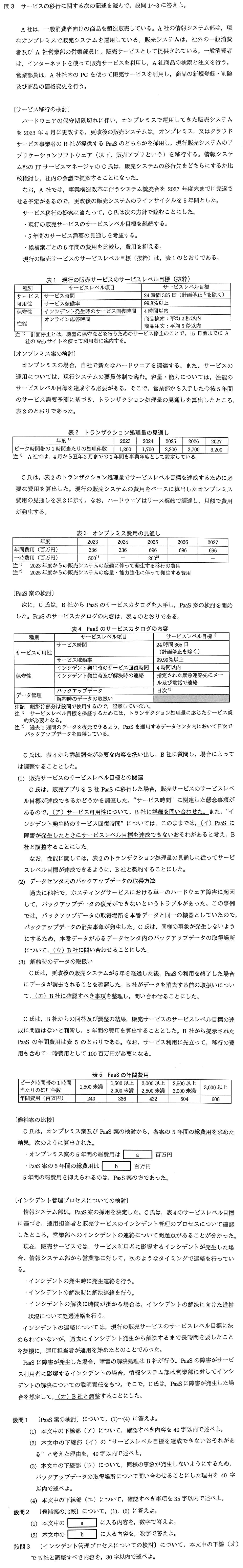 令和04年度春期午後Ⅰ【問3】
